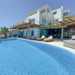 Die M11 - King And Queens Villa - Luxury Villa With Pool & Gym Mykonos Town verfügt über eine Terrasse mit Blick aufs Meer und ist 5 Autominuten vom Flughafen Mykonos entfernt gelegen.